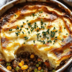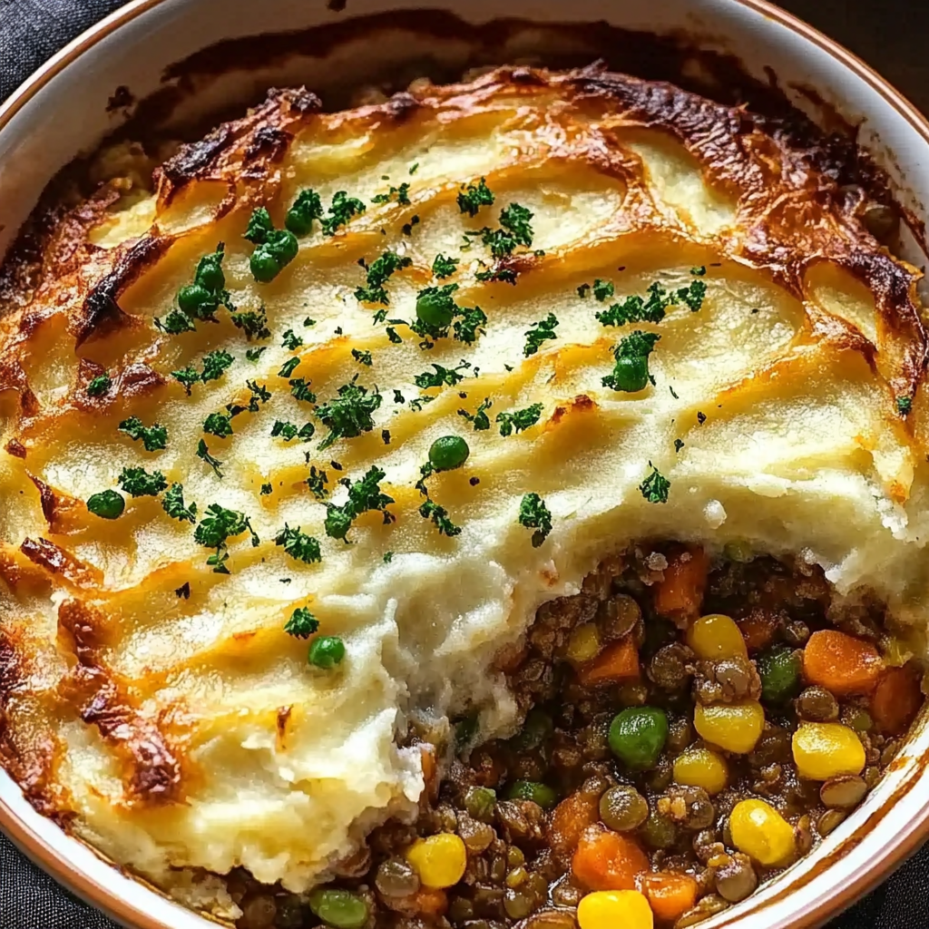 Vegan Lentil Shepherd’s Pie is a plant-based version of the traditional shepherd’s pie made with lentils, vegetables, and mashed potatoes, providing a hearty meal.